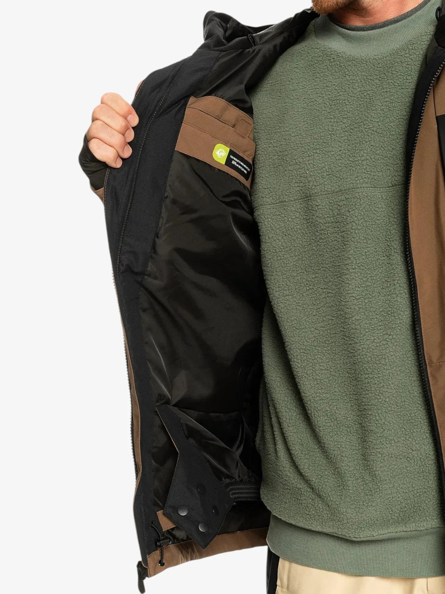 • Tejido: tecnología 10K Quiksilver DryFlight® [10000 mm/5000 g] con tratamiento DWR libre de PFC