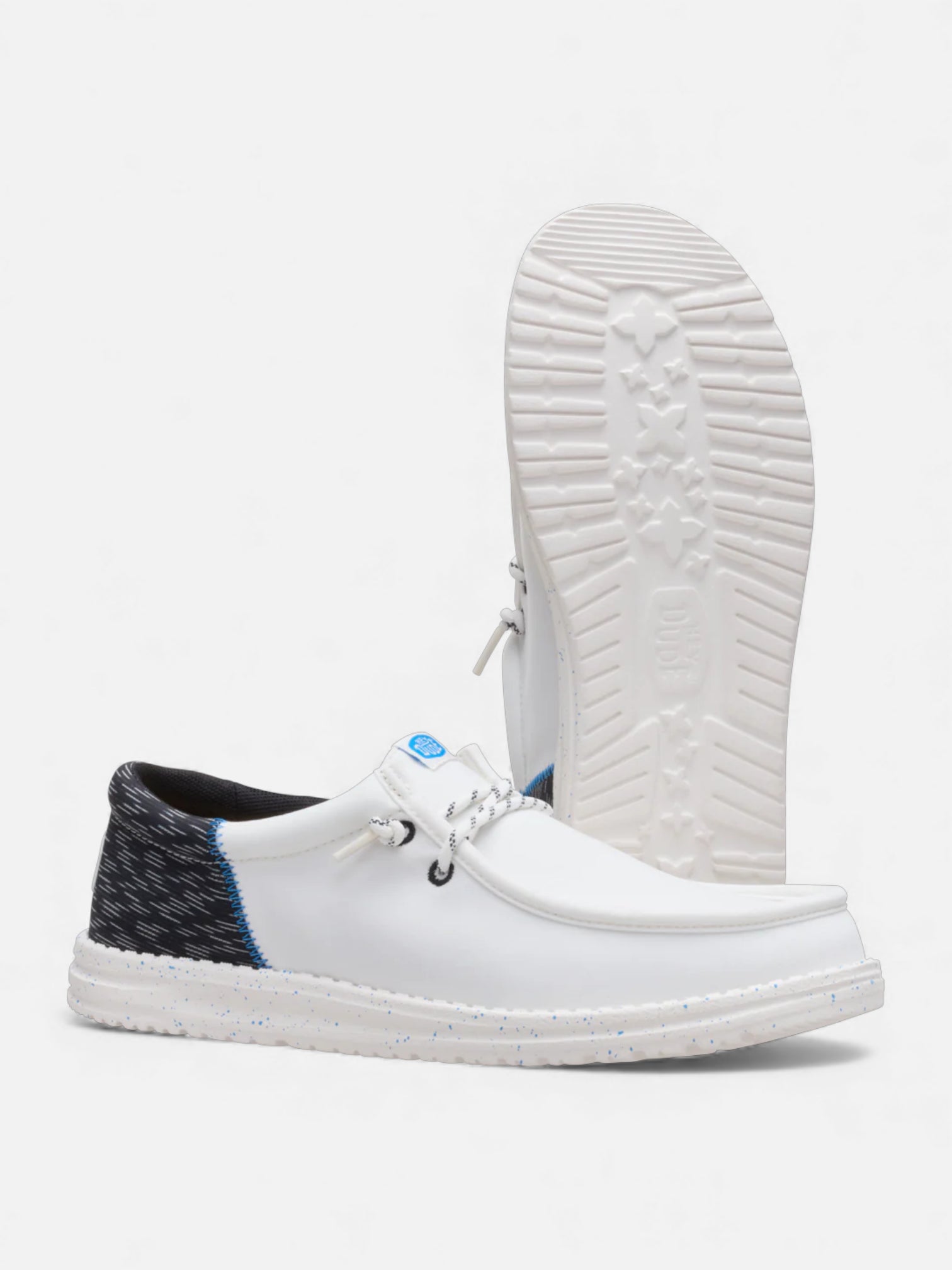 La suela ultraliviana y flexible, con un suave detalle moteado, brinda una sensación de flotar en cada paso. Ideales para viajar, caminar o acompañar tus outfits casuales, con el confort típico de Hey Dude.